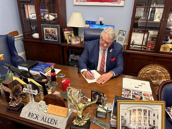 "Many of Georgia's rural communities are dependent on timber production and forest management for their economic well-being. Unfortunately, our timber harvesting and hauling businesses are facing significant turmoil due to recent mill closures, natural disasters, trade barriers, and declines in stumpage and delivered timber prices. My legislation—the Timber Harvesters, Haulers, and Landowners Market Disruptions Relief Act—seeks to provide landowners a lifeline during times of market uncertainty, restore our resilient forestry industry, and strengthen rural America. I am proud to lead this bill and will work diligently to bring it up for a House vote," said Congressman Allen.