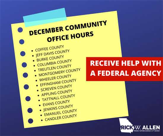 Community Office Hours are an opportunity for constituents to get assistance regarding a number of federal issues, including problems with federal agencies such as Social Security, Veterans Affairs, Medicare, and others. Click here for a list of upcoming dates, times and locations.