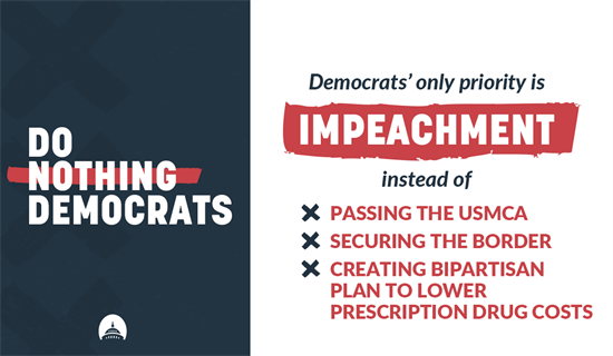 Meanwhile, House Intelligence Committee Chairman Adam Schiff continued his partisan impeachment sham this week with a set of new witnesses. However, there is still no tangible evidence of quid pro quo, bribery, or any crime. This entire process is backwards; they accused the President first and are trying to find a crime second.